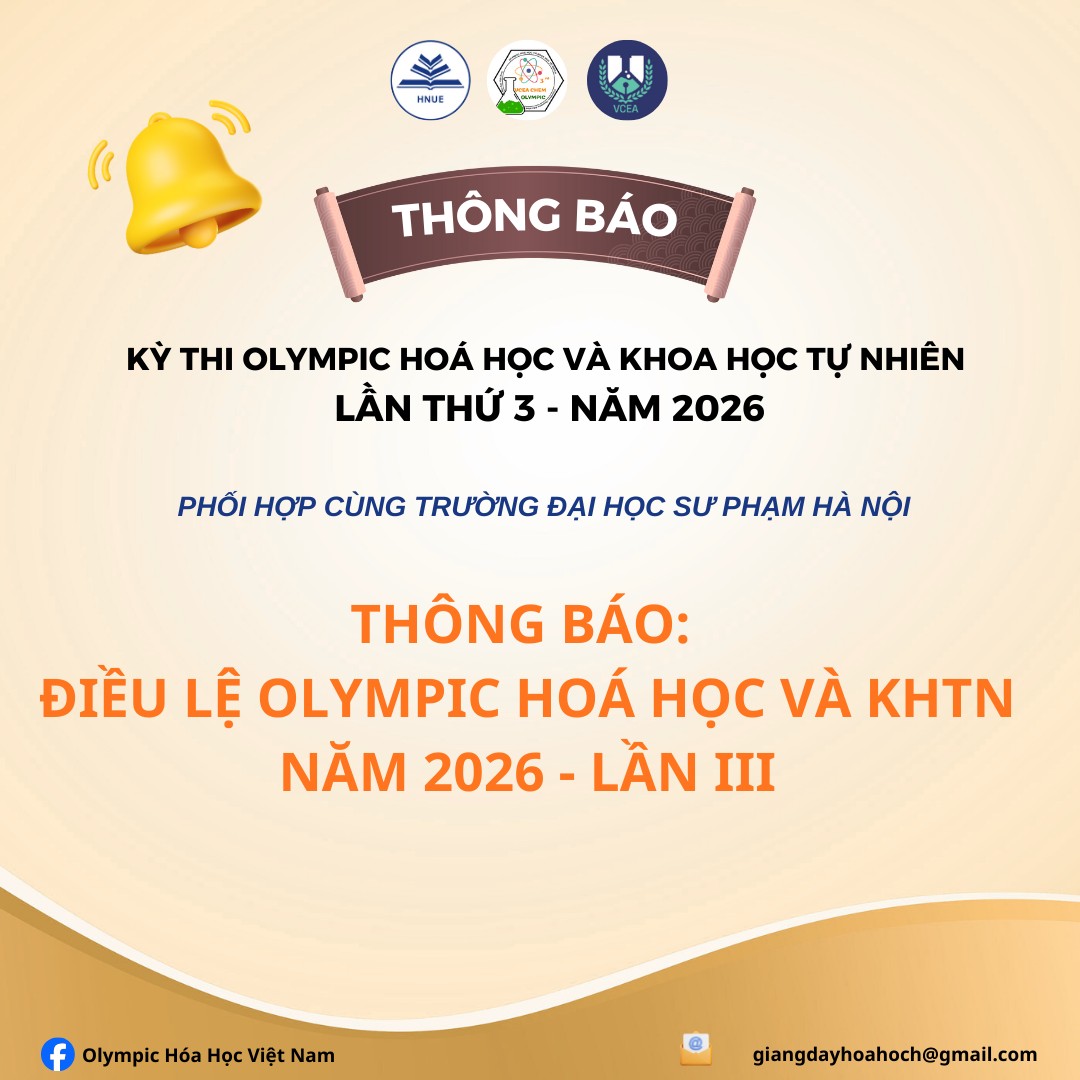 Ban Tổ chức trân trọng thông báo: Nhằm bảo đảm Kỳ thi Olympic Hóa học và Khoa học Tự nhiên năm 2026 – Lần III được tổ chức đúng tôn chỉ, mục đích của kỳ thi; bảo đảm các nguyên tắc an toàn, nghiêm túc, khách quan, công bằng, chính xác, đồng thời tuân thủ đầy đủ các quy định về tổ chức thi của Bộ Giáo dục và Đào tạo, thí sinh và các tổ chức tham dự kỳ thi có trách nhiệm nghiên cứu kỹ và thực hiện nghiêm túc toàn bộ các quy định được nêu trong Điều lệ Kỳ thi ban hành kèm theo quyết định tại đường dẫn sau: